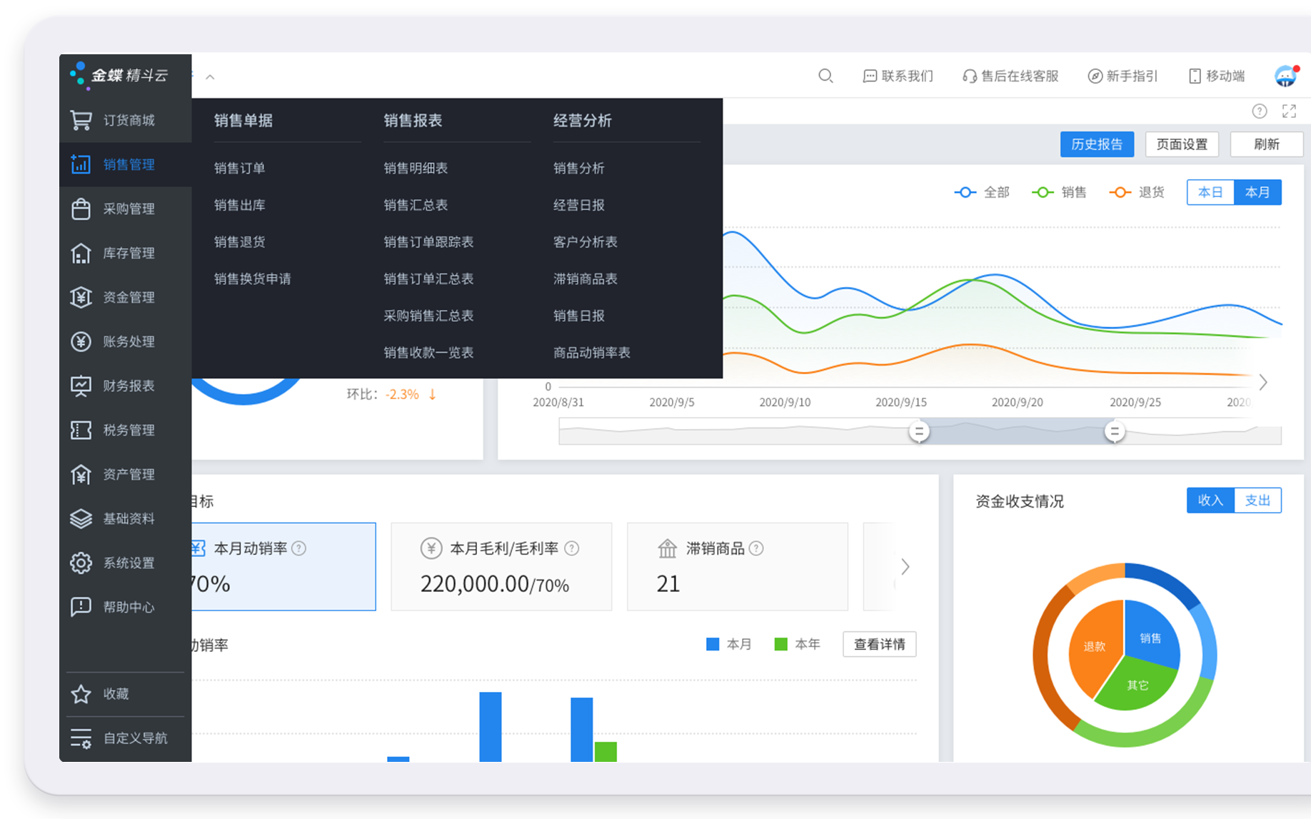 金蝶云·星辰聚焦小型企業(yè)在線經(jīng)營和數(shù)字化管理,以“新財稅、新營銷、新平臺”三大特性賦能企業(yè),提供財務(wù)云、稅務(wù)云、進銷存云、訂貨商城等SaaS服務(wù),支持小型企業(yè)拓客開源、智能管理、實時決策